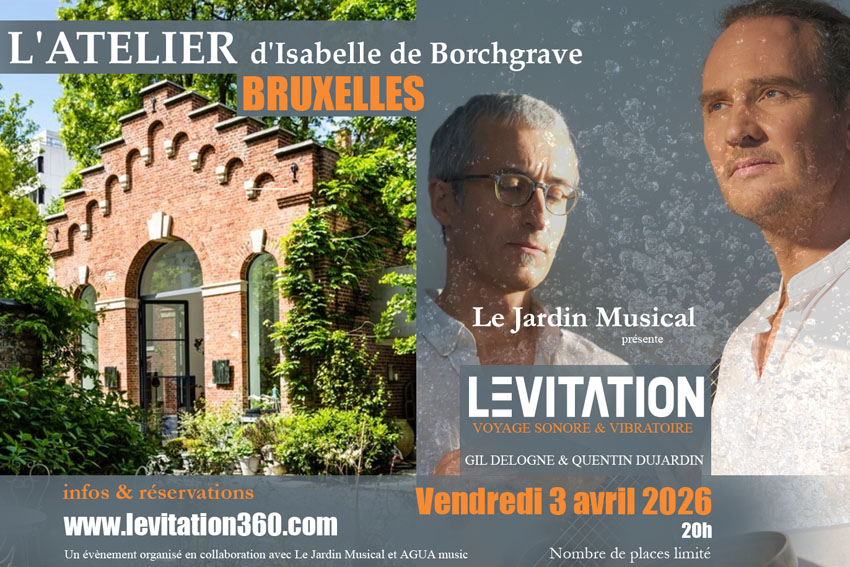 LEVITATION 360 est né de la rencontre entre Gil Delogne et Quentin Dujardin. Le son des bols tibétains, des gongs, de la voix mélangé à la guitare baryton. Leur démarche personnelle s’inscrit au cœur de notre patrimoine qu’il soit végétal ou minéral pour relier l’auditeur à ce qui nous entoure et le plonger au plus profond de ses émotions.