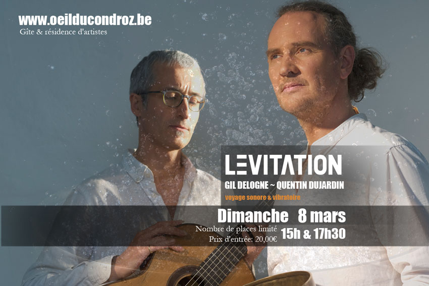 LEVITATION 360 est né de la rencontre entre Gil Delogne et Quentin Dujardin. Le son des bols tibétains, des gongs, de la voix mélangé à la guitare baryton. Leur démarche personnelle s’inscrit au cœur de notre patrimoine qu’il soit végétal ou minéral pour relier l’auditeur à ce qui nous entoure et le plonger au plus profond de ses émotions.